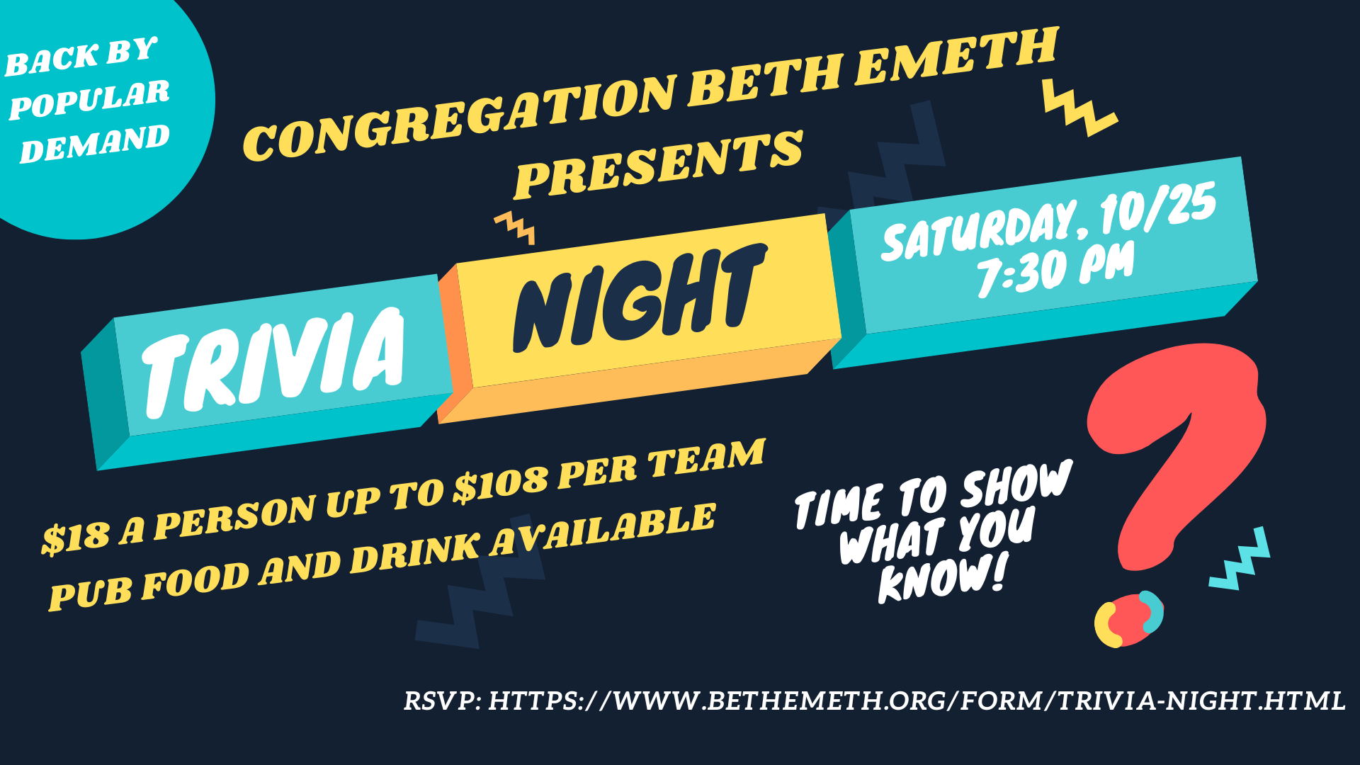 Trivia Buffs! Join us on October 25 for the return of brain-teasing fun at CBE's Pub Trivia Night. Grab your friends, family, or fellow congregants and assemble your dream team of trivia enthusiasts. What to Expect: 📝 Creative and diverse trivia questions to exercise your intellect. 🍔 Delicious pub grub and drinks are available for sale before and during […]