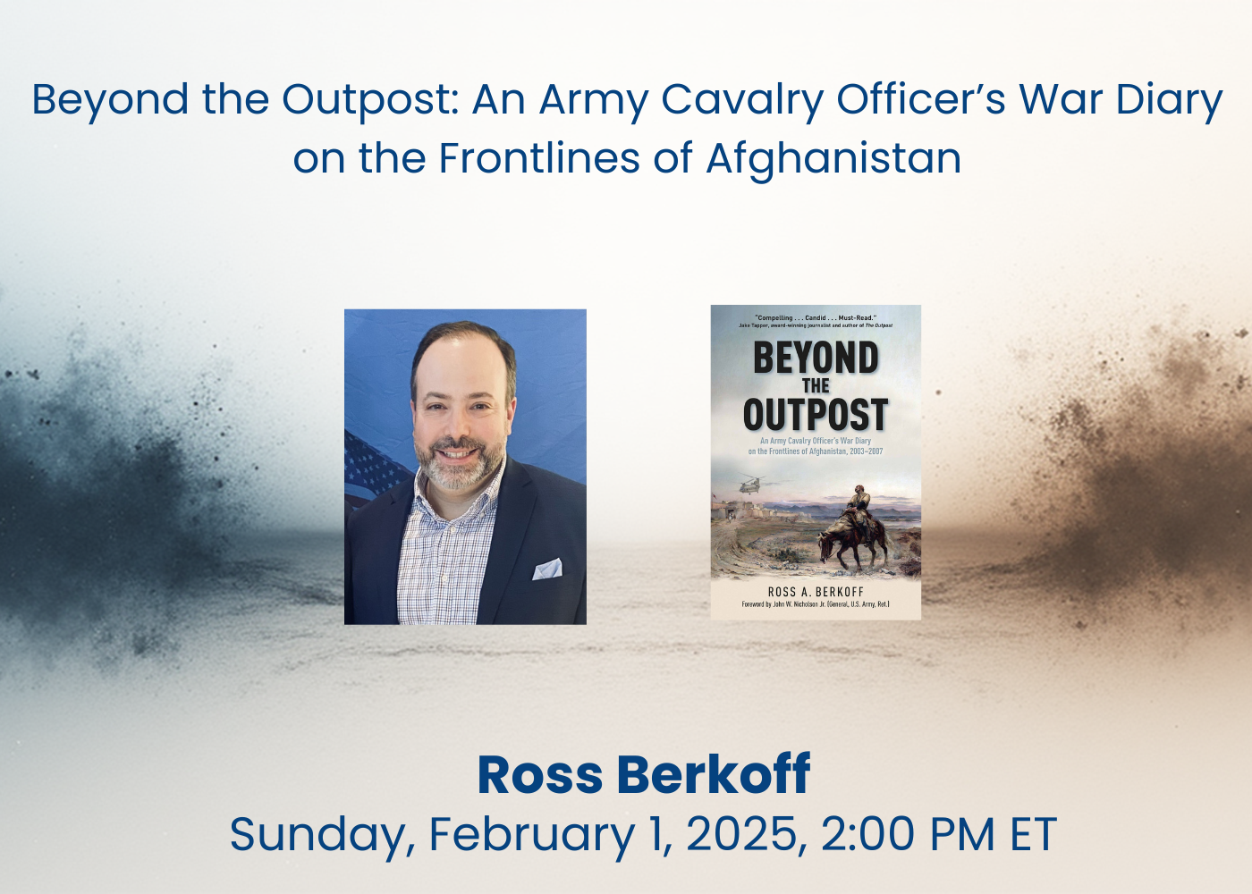 Beyond the Outpost: An Army Cavalry Officer’s War Diary from Afghanistan Feb 1 8:00 AM - 2:00 PM Community Calendar Beyond the Outpost: An Army Cavalry Officer’s War Diary from Afghanistan Free