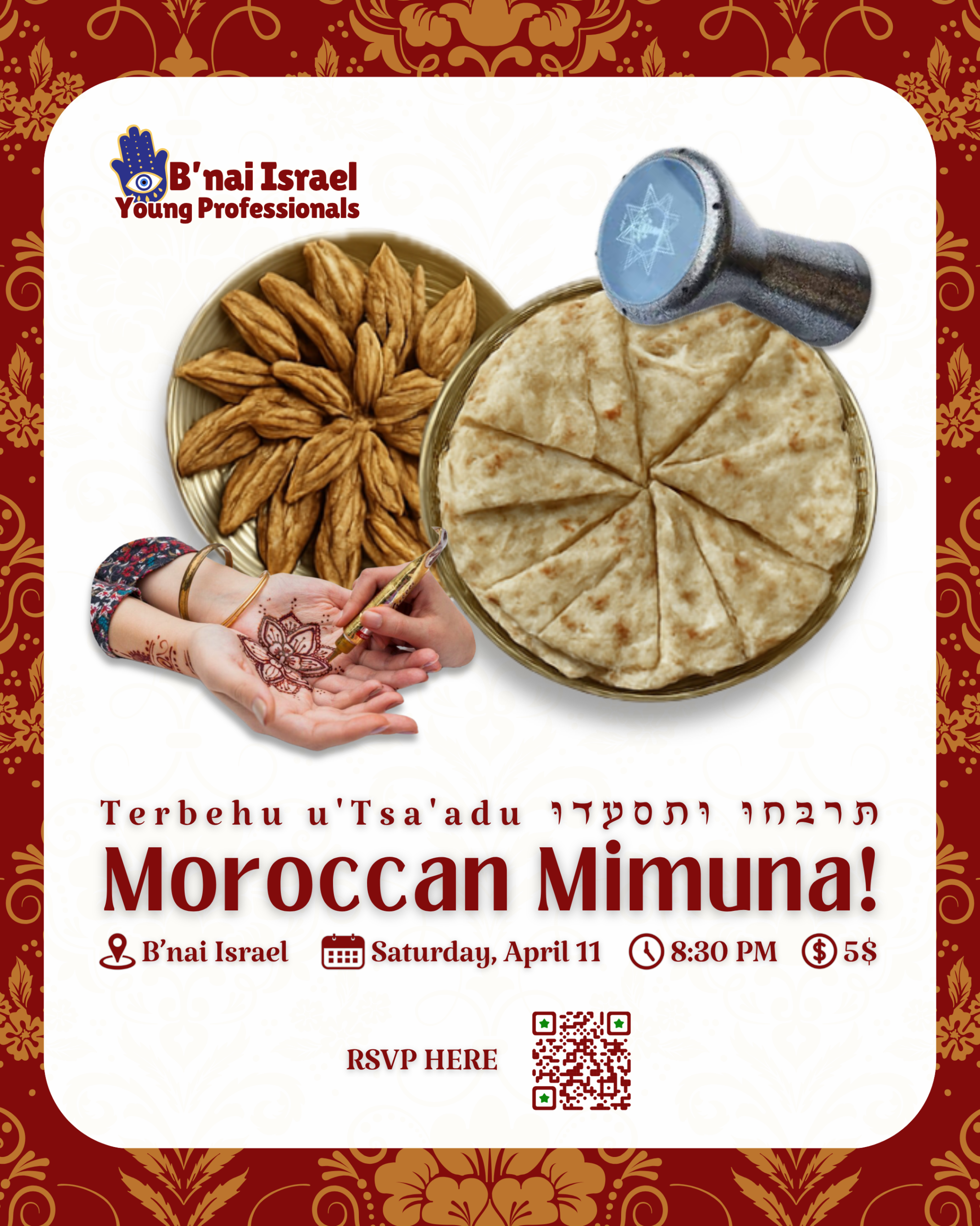 B’nai Israel Young Professionals Mimuna Celebration! Apr 11 B’nai Israel Young Professionals Mimuna Celebration! 8:30 PM - 10:30 PM $5